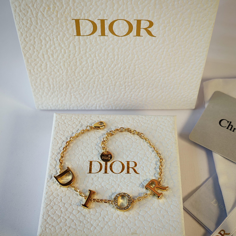 اسوارة أنيقة مطلية باللون الذهبي مع حروف DIOR الفاخرة، يزين حرف O بفصوص كريستال لامعة تضيف لمسة فخامة مميزة.