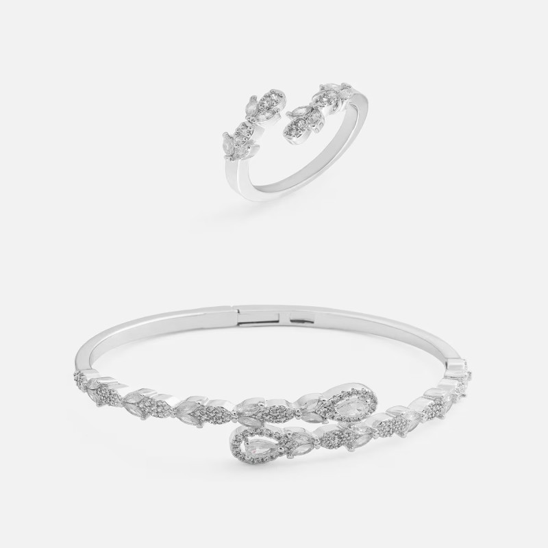 - الـــلــــــــون: الفضي بتصميم جذاب متداخل و مرصع بفصوص وأحجار الزركون اللامع